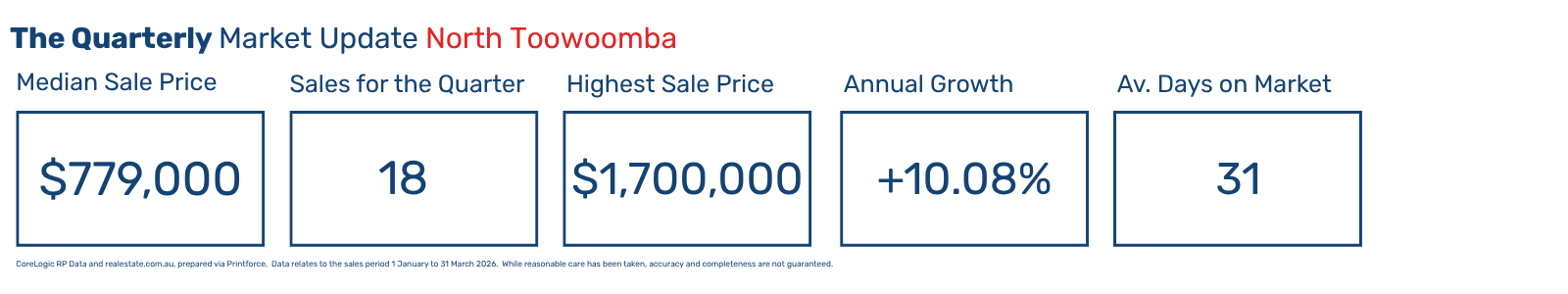For buyers who want character homes, an established feel, and a location that keeps them connected to everything, North Toowoomba continues to make a lot of sense. The latest quarterly figures show the suburb recorded a median house price of $779,000, annual house growth of 10.08%, 18 house sales for the quarter, and an average of 31 days on market. The report also shows a median asking rent of $550 per week and a rental yield of 4.3% for houses.