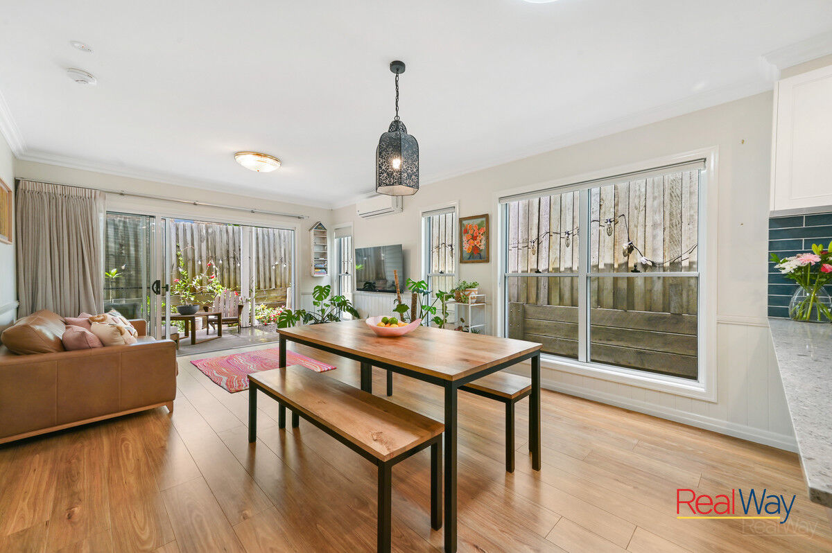 Open plan living and dining featuring reverse cycle air-conditioning and large aluminium glass sliding windows leading out to a tranquil, undercover, paved courtyard.